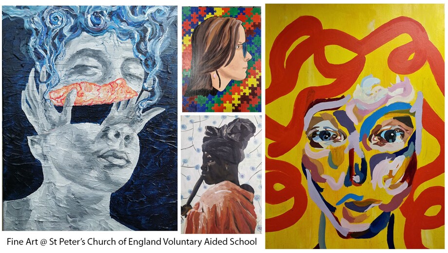Art at St Peter’s is both an intellectual and creative subject. Art is the means by which we interpret, express and understand our place in the world and is viewed as an important aspect of education. The art room is always buzzing with pupils at lunchtimes, each exploring their personal interests through art, photography and design skills. We strive to encourage students to develop independence on their art journey.