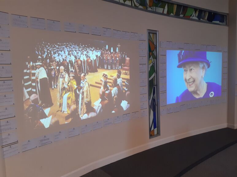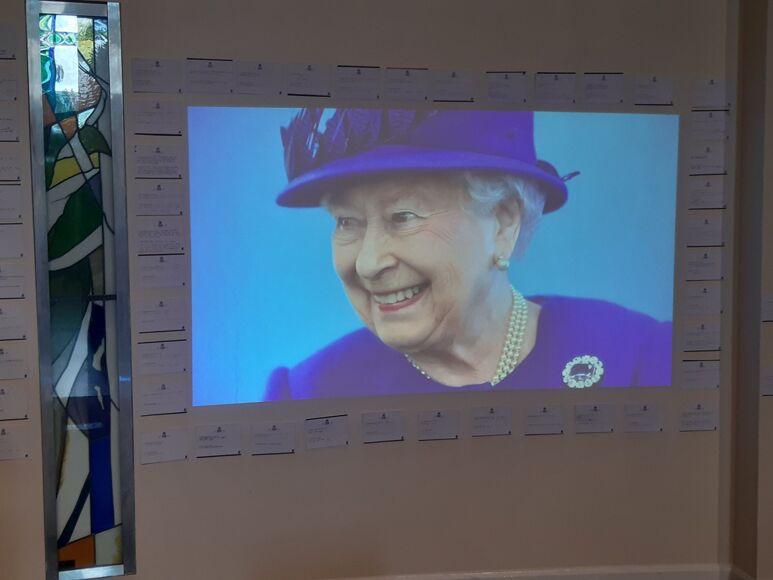 In addition, Years 7,8&9 have taken time in History lessons writing postcards which are now on display in our Hall with rolling images of the Queen throughout her life.