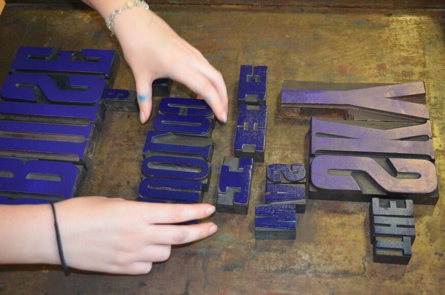 A selection of the letterpress outcomes have been selected for display in the Maketank gallery window in central Exeter on Paris Street. Photographs of the artworks will later form part of a bigger exhibition at the Devon and Exeter Institution. These photos will be added to the University's digital collection. The work will be on display at the Maketank until 3rd February along with work from five other Exeter Schools. Do try to get along to admire the display before it closes.