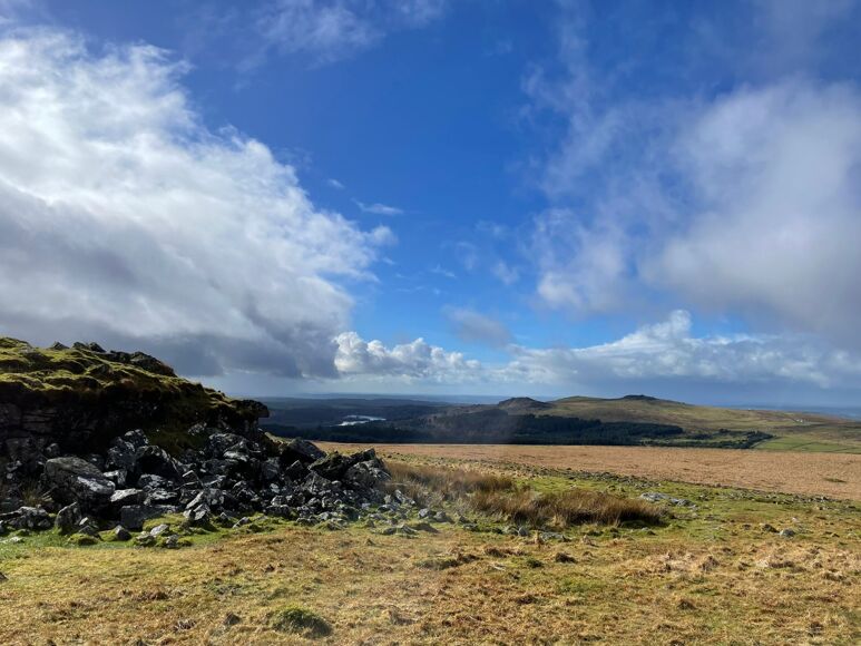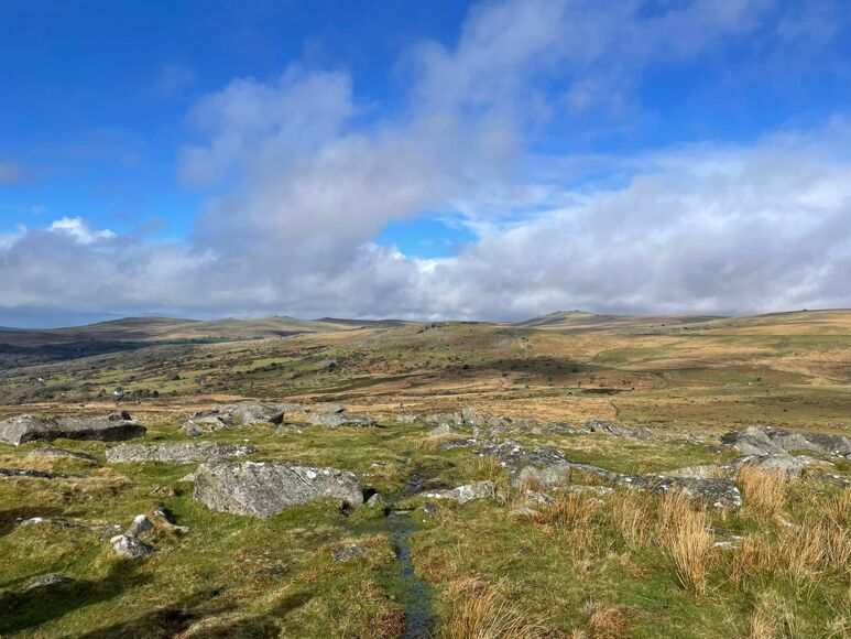 We headed up onto a slightly snow dusted Dartmoor bright and early but our walk south of Dartmoor didn’t bear such snow witness. We set off South from Princetown to Nun’s Cross passing fell runners who were at 9:30 already some 11km into a 50km “Dartmoor in a Day” Winter Traverse race / challenge. Turning back on ourselves to turn again West we followed the Devonport leat to Crazy Well Pool. In true Dartmoor fashion we were blessed with all manners of weather; the saying four Seasons in one day could have easily been repeated four times though. Dartmoor certainly hasn’t missed out on all this rain we’ve been tolerating, the ground was rather squelchly underfoot.